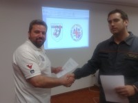 | Bagyó Sándor a VMSZ elnöke és Balázs László a PMKMSZ szolgálat-vezetője aláírja a megállapodást |