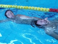 Szintén ezen a napon, az éppen zajló keszthelyi tanfolyam résztvevői versenyen vettek részt. A Keszthely Város Sportjáért és Oktatásáért Egyesület mozgáskorlátozottak szakosztálya rendezett úszóversenyt. A felhívást hallgatóink az uszodában látták meg és mindannyian úgy vélték, ez egy olyan ügy, amely mellé oda kell állni. A tanfolyam vezető oktatója - az utolsó oktatási napot kissé átütemezve - benevezte a csapatot a versenyre.