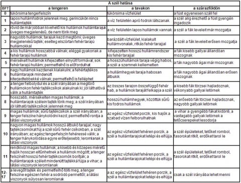Szélerősség táblázat